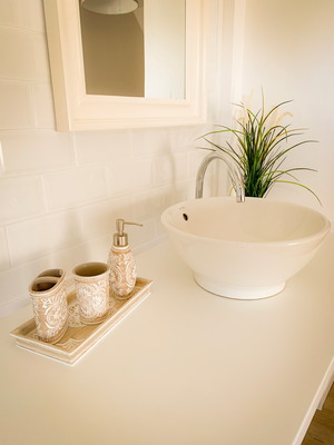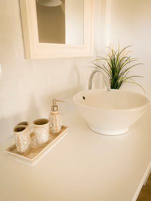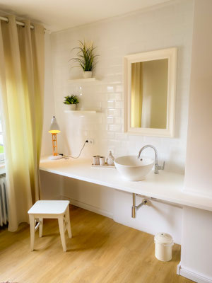 Im Schlafzimmer steht eine weitere Waschgelegenheit zusätzlich zum Bad im Erdgeschoss zur Verfügung.