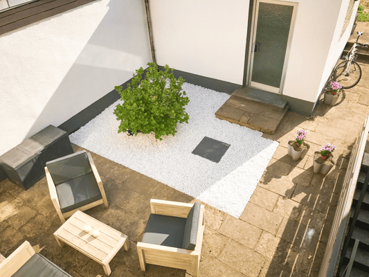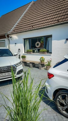 Wenn Du mit dem eigenen PKW anreist, steht dir ein Stellplatz auf dem privaten Grundstück direkt am Haus zur Verfügung. Von dort ist das Haus nahezu ebenerdig zu erreichen.