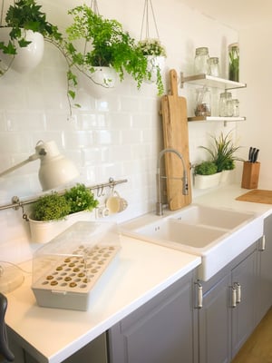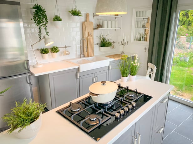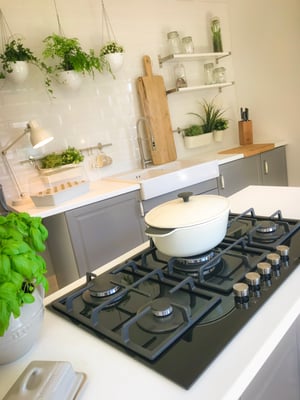 Natürlich findest du auch Geschirr, Besteck, Töpfe und Pfannen in der Küche.